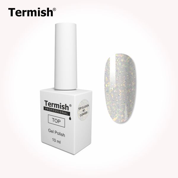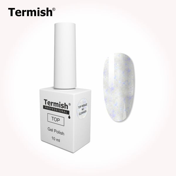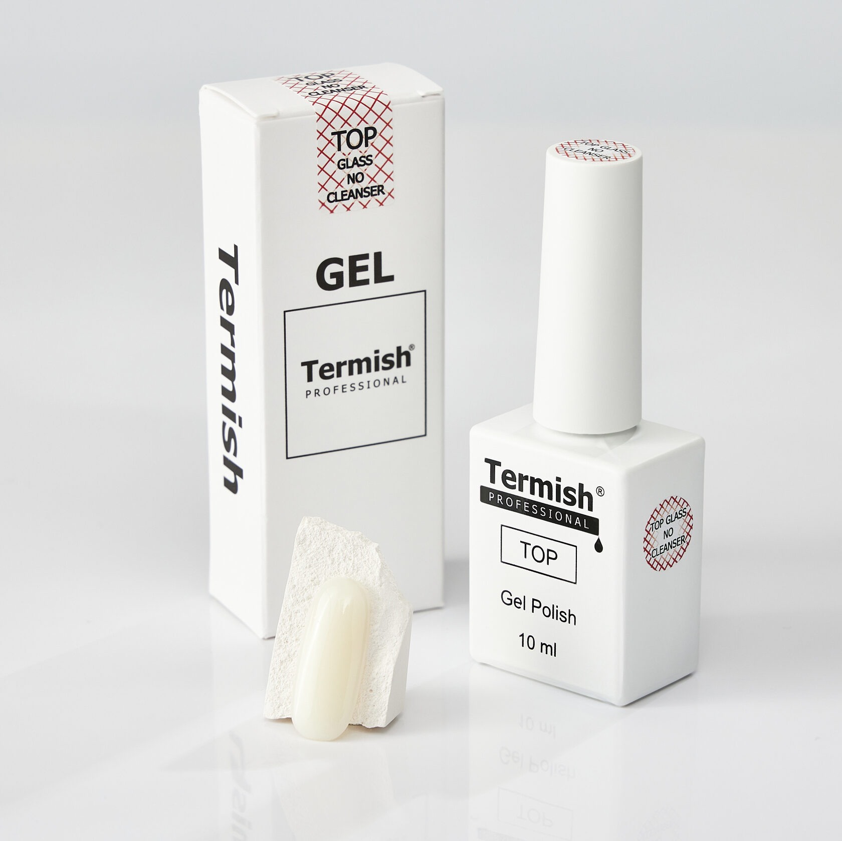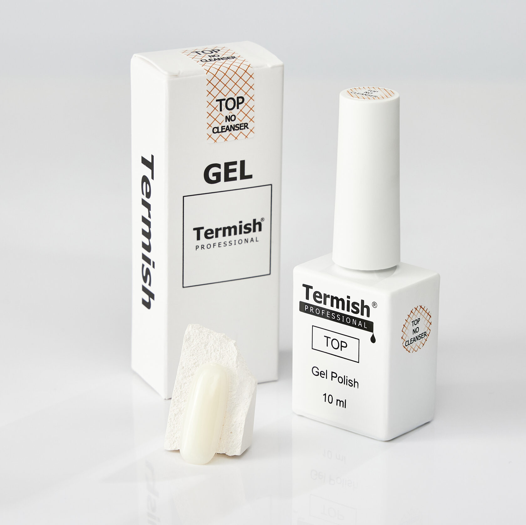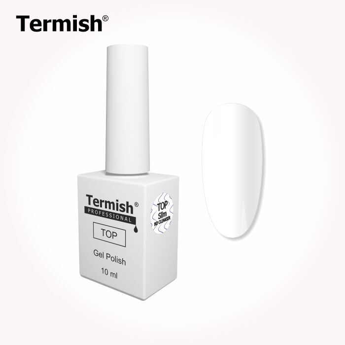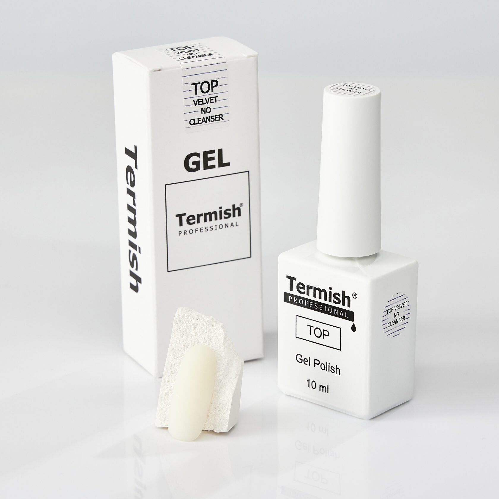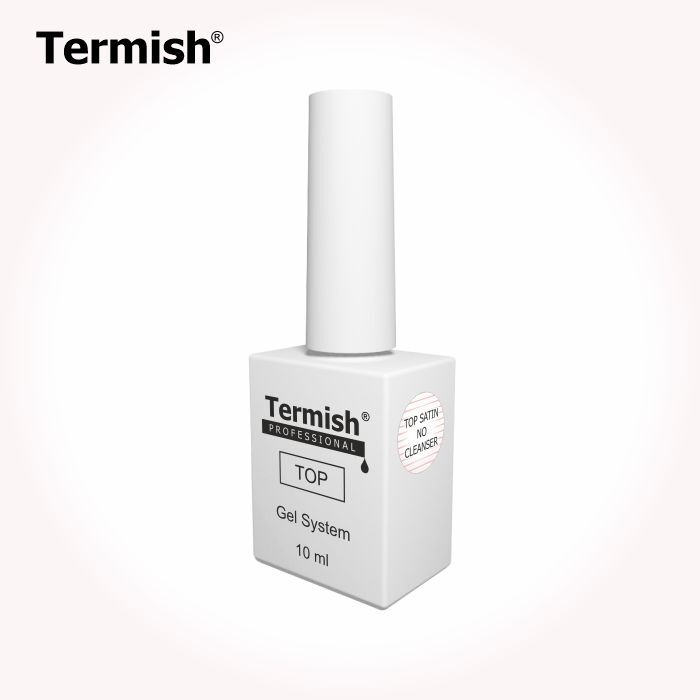Коллекция топов Termish состоит из 5 видов: Top Coat – топ с липким слоем (только по спец.заказу) Top no cleanser – топ без липкого слоя Top glass no cleanser – топ усиленный блеск, без липкого слоя Top Satin no cleanser – топ матовый сатиновый, без липкого слоя (эффект бафа) Top Velvet no cleanser – топ матовый мягкий, без липкого слоя (эффект плюша).
